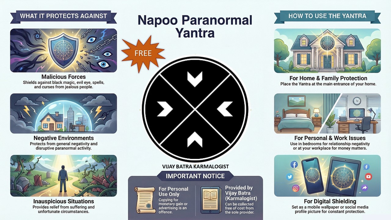 - Use Napoo Yantra at home, rooms, office, phone screen, laptop etc.
